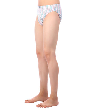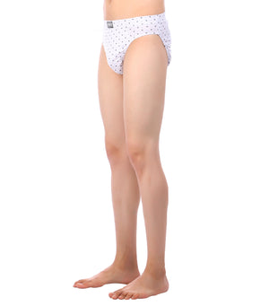 100% Super Combed Cotton V-Cut Briefs available in 12 prints on white color. Super-Combed Cotton yarn is much softer, smoother but stronger than regular cotton yarn.